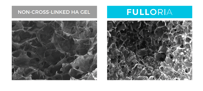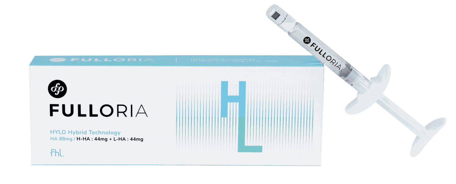 HYLO refers to High Molecular Weight Hyaluronic Acid (H-HA) and Low Molecular Weight Hyaluronic Acid (L-HA). It is a proprietary technology developed by FHL for the production of Fulloria, utilizing a specialized method that involves precise temperatures and stirring/mixing speeds. The HYLO technology aims to enhance the covalent bonds of the existing hyaluronic acid while also promoting ongoing skin regeneration through the strategic arrangement of the hyaluronic acid molecules.