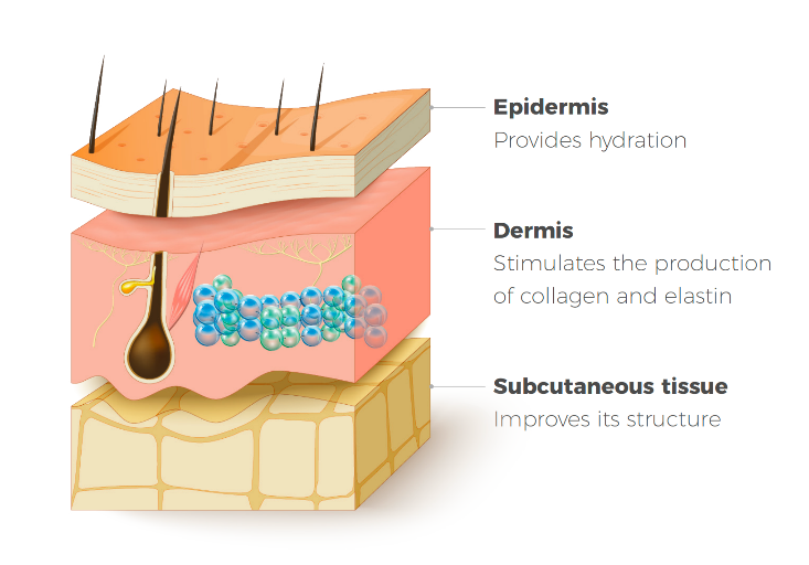 Once administered, FULLORIA permeates the tissue and interacts uniquely with each layer of the skin.